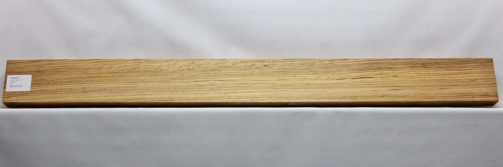 Zebrawood is a tough, durable, visually striking West African wood whose heartwood base color -- which can range from tan to a dull pale yellow, to a muted off-white / almost gray hue, depending on specific region and conditions of growth -- is decorated by dark brown striping of varying degrees (ranging to almost black), hence its name. The striping is typically long and fairly uniform when the wood is quartersawn, but wavy and erratic when flatsawn.¬† Sapwood is easily distinguishable (by its lack of striping, naturally) and is usually a light, pale white color.Its coarse, open-poured texture combined with its wavy and/or interlocked grain patterns can make planing a challenge. (as well as finishing, if filling all surface pores is requisite.) For any sort of resawing or surfacing, blades and cutting tools should be at their sharpest to minimize tear-out.¬† The wood glues well and usually possesses a pleasant, moderate to high luster, which can make for impressive finishing.While flatsawn lumber can yield some quite dramatic aesthetic results, quartersawn lumber provides maximum (and sometimes much needed) stability. The species is known to be difficult to dry, with pieces sometimes warping during the kiln drying process. Tiny pockets of small void areas, also, are not uncommon along the darker striped areas -- especially among flatsawn boards.Zebrawood's trademark aesthetics have made it very popular with veneer mills around the world. However, great care is required when handling, to avoid it cracking.  The wood's popularity keeps it in steady demand, which makes it moderately expensive in spite of a generally steady supply in the US.  While its demand is based almost exclusively on its aesthetic appeal, Zebrawood is a strong, stiff lumber, once dry.
